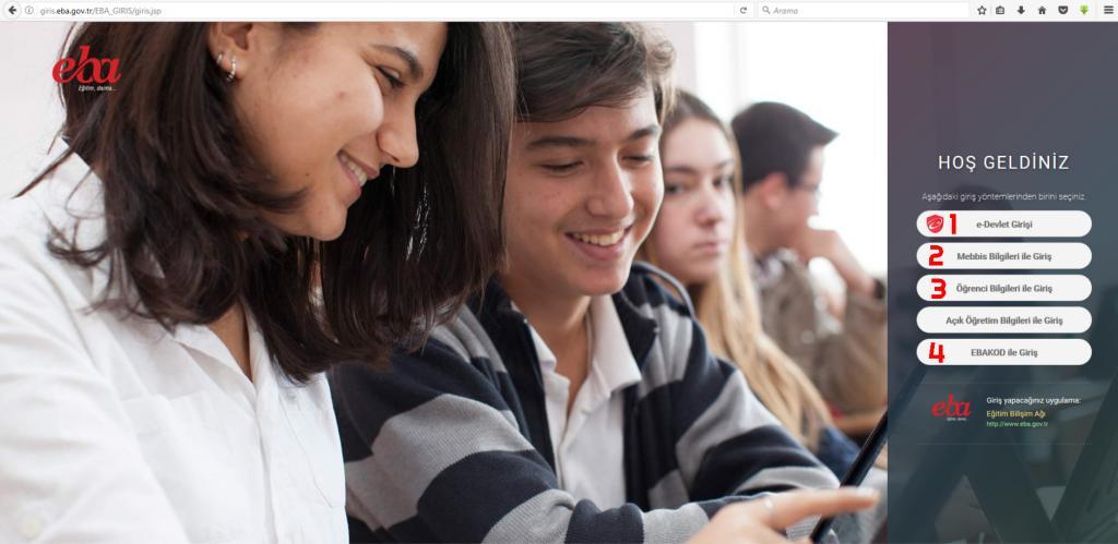 EBA Giriş sayfası karşınıza geldikten sonra sağ altta açılan numaralı bölümlerden kendinize uygun kısımdan girişinizi gerçekleştirebilirsiniz.